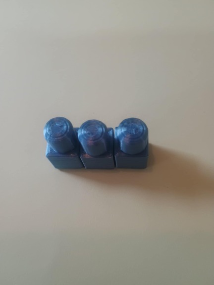 Her et sæt med 3 brikker til det hjemmelavede kryds og bolle spil